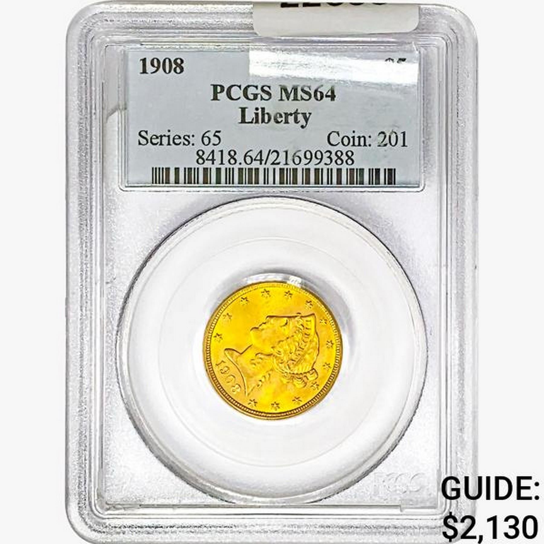 1908 $5 Gold Half Eagle PCGS MS64 Liberty