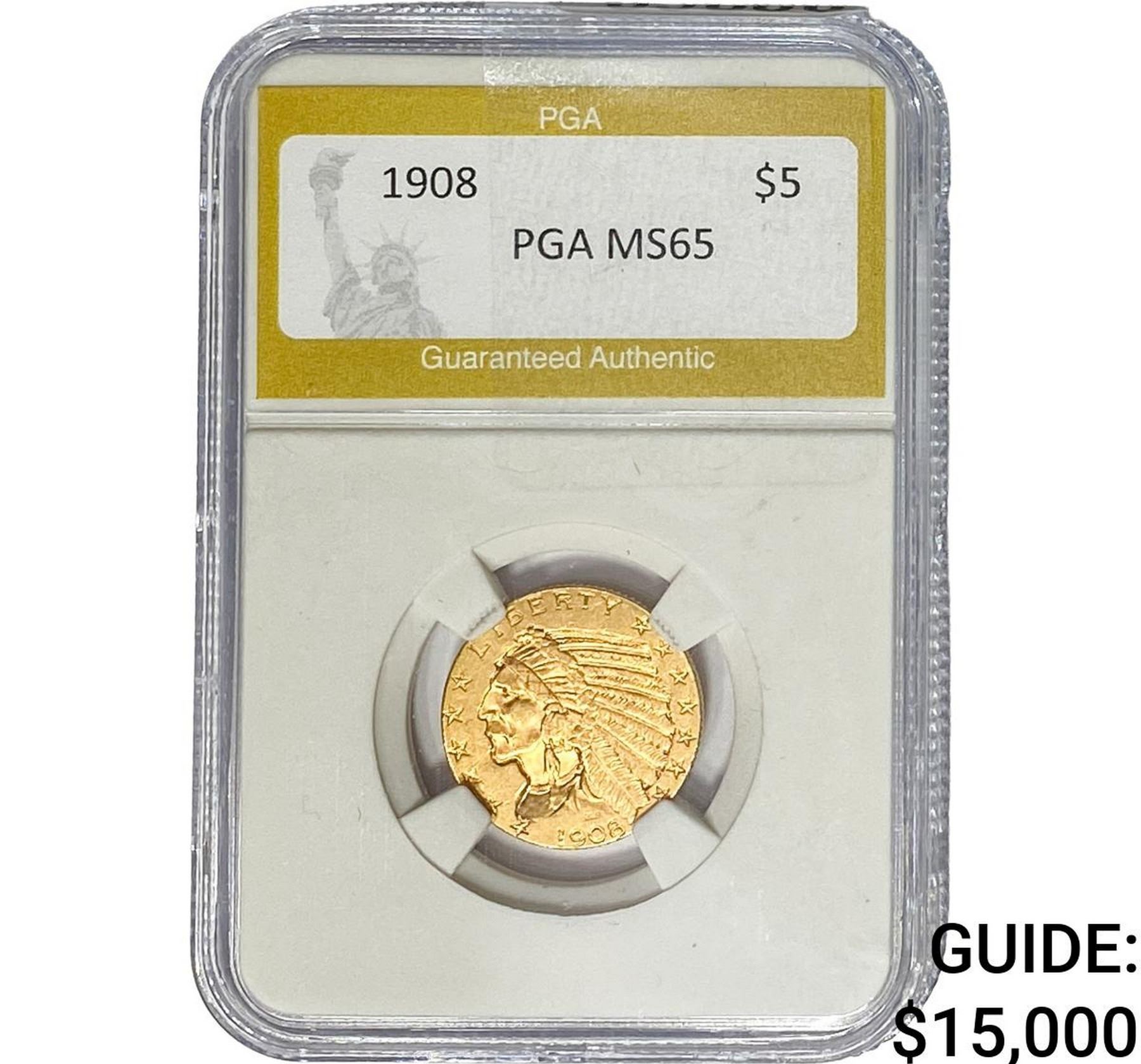 1908 $5 Gold Half Eagle PGA MS65