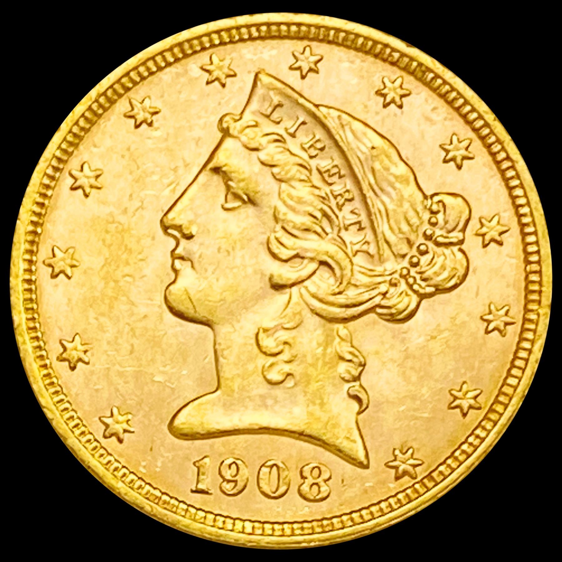 1908 $5 Gold Half Eagle UNCIRCULATED