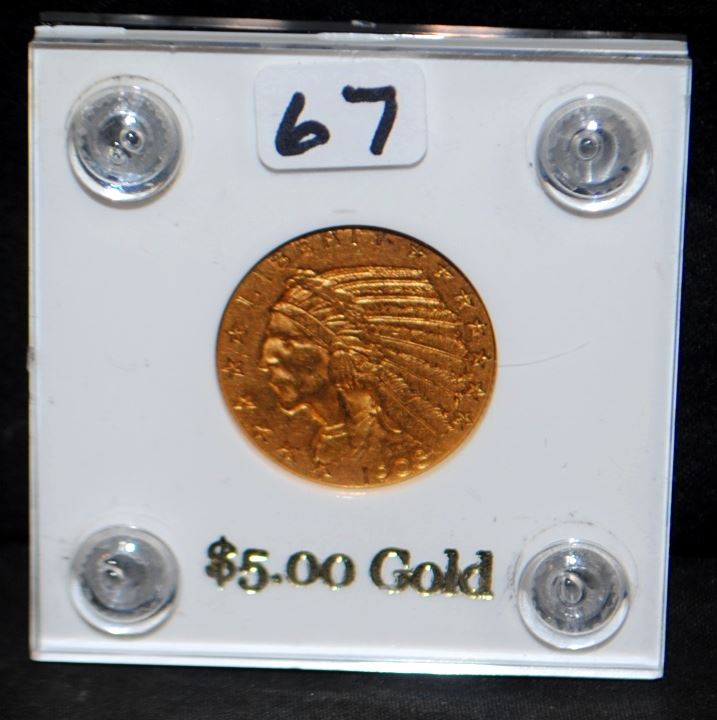 1908 $5 INDIAN GOLD COIN FROM SAFE DEPOSIT - SELLER GRADES AT VF/XF (THE CURRENT COIN WORLD TRENDS LISTS AN VF20 @ $425.00 AND AN XF40 @ $450.00)