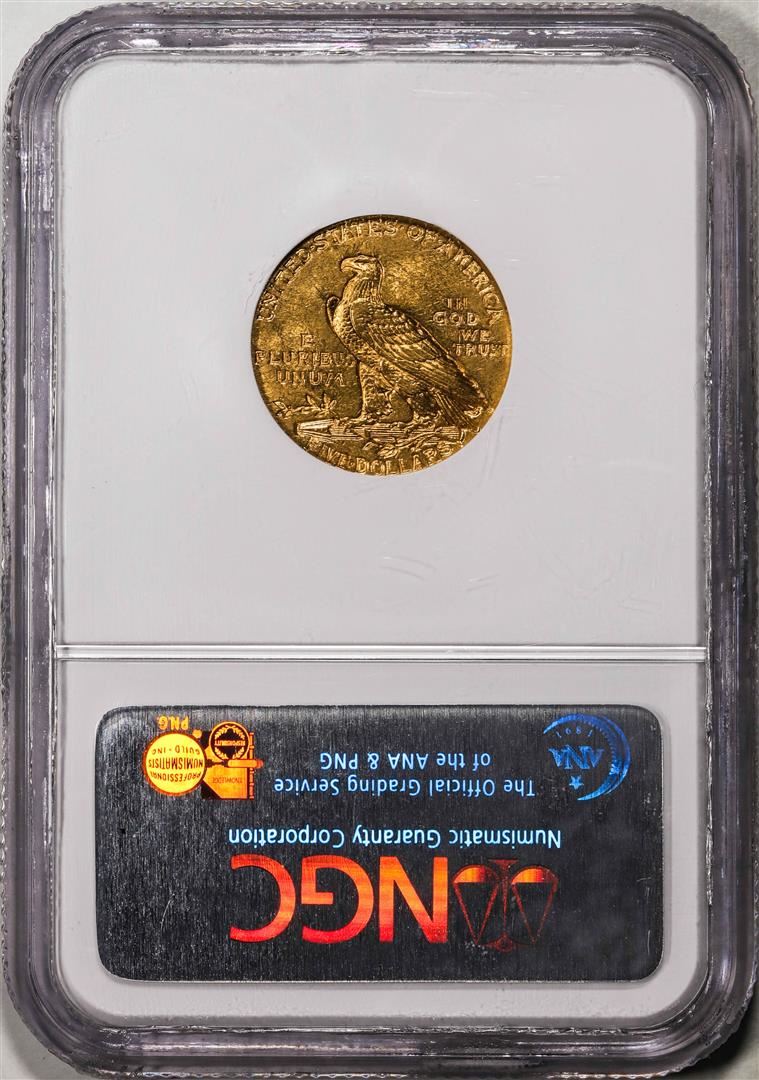 One 1908 $5 Indian Head Half Eagle Gold Coin NGC MS62. NGC Certified.