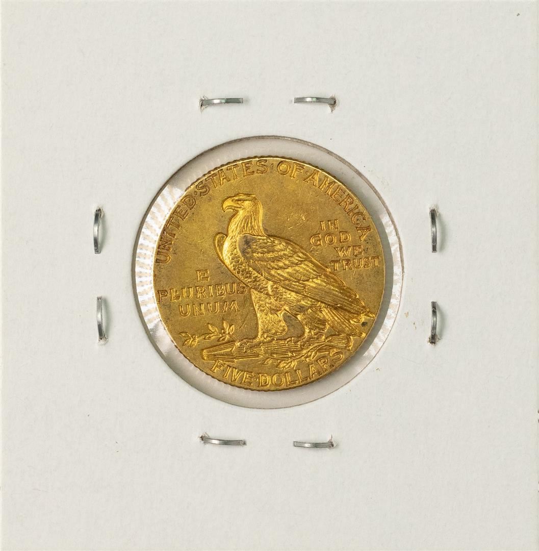 One 1908 $5 Indian Head Half Eagle Gold Coin.