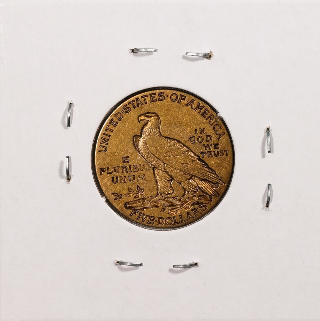 One 1908 $5 Indian Head Half Eagle Gold Coin.