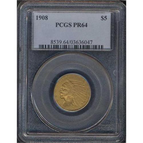 VERY ATTRACTIVE PROOF 1908 INDIAN $5 GOLD <b>(PCGS # 8539)</b>