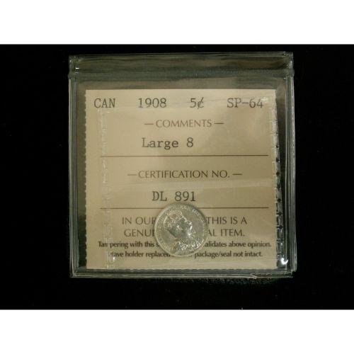 1908 5¢ Lg 8 ICCS SP64. Superb full white example