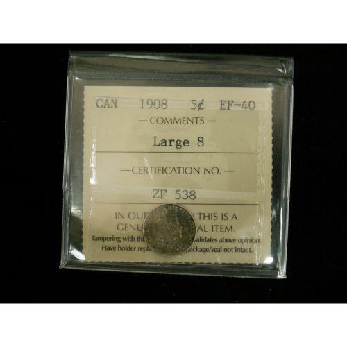 1908 5¢ Lg8 ICCS EF40, popular and underrated