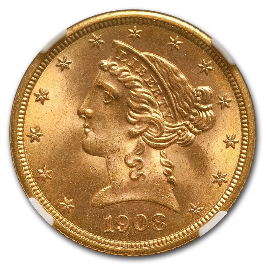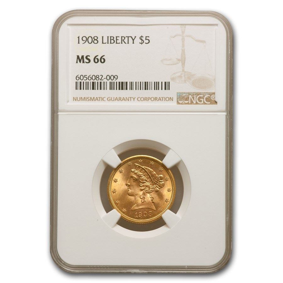 1908 $5 Liberty Gold Half Eagle MS-66 NGC