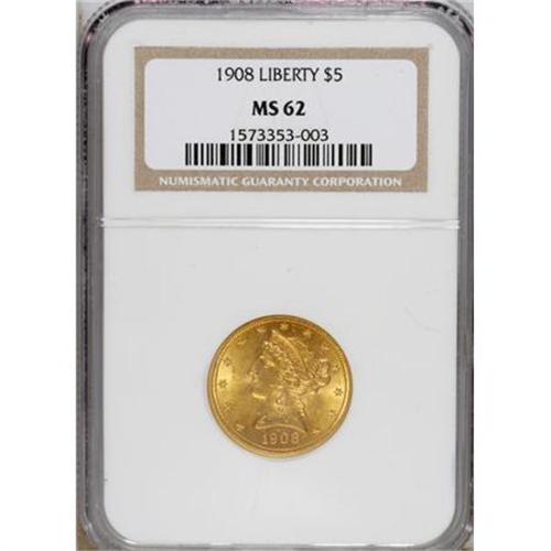 1908 $5 MS62 NGC. NGC Census: (1392/1840). PCGS Po