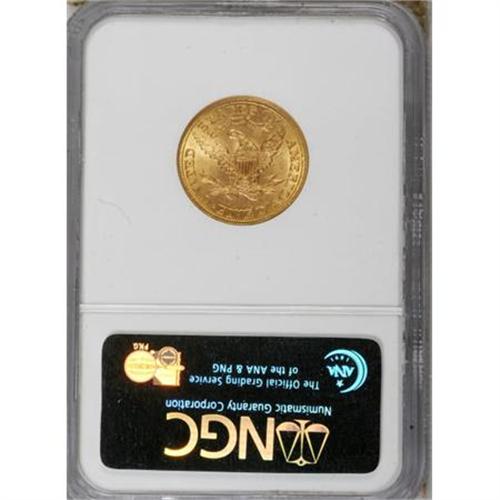 <B>1908 $5 MS62 NGC.</B></I> NGC Census: (1417/1860). PCGS Population (1126/1827). Mintage: 421,874. Numismedia Wsl. Price for NGC/PCGS coin in MS62: $310. (#8418)<BR><BR><B>Coin Engraver:</B> Christian Gobrecht<BR><BR><b>Shipping:</b> Coins & Currency (<a target="_blank" href="http://www.heritageauctions.com/common/shipping.php">view shipping information</a>)