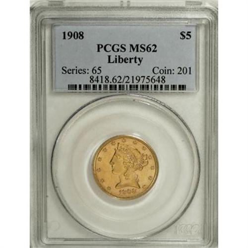 1908 $5 MS62 PCGS. PCGS Population (1117/1793). NG
