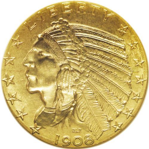<B>1908 $5 MS64 NGC.</B></I> A remarkable example of this always-popular first-year issue of the incuse design Indian half eagle. The surfaces are bright and satiny with a light reddish tinge, and are remarkably clean for this usually heavily abraded type, although a couple of faint pinscratches are noted on the upper right reverse field.<BR><BR><b>Shipping:</b> Coin/Currency (<a target="_blank" href="http://www.heritageauctions.com/common/shipping.php">view shipping information</a>)
