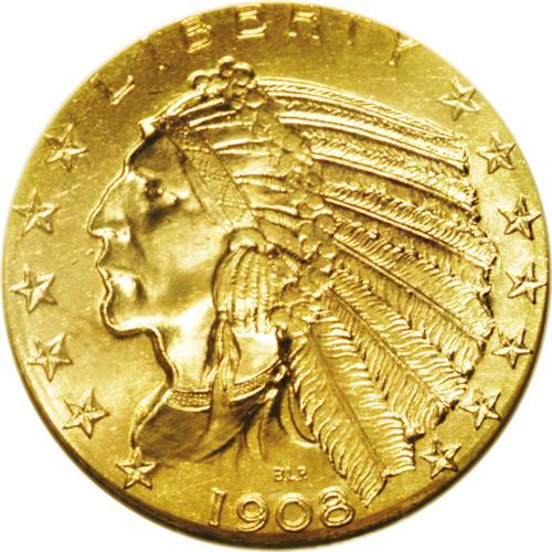 <B>1908<$5> MS64 NGC.</B></I> Notably clean for this normally heavily abraded type, this is a bright, satiny coin that displays an occasional dash of reddish patina. A wonderful first-year type coin.