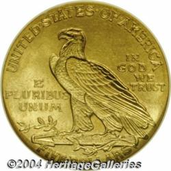 <B>1908<$5> MS64 NGC.</B></I> Beautiful, well frosted golden-bronze surfaces are sharply defined on all but the tip of the eagle's wing and are just a few wispy contact marks from attaining a coveted Gem classification. A terrific type coin. <BR><BR><B>Important notice:</B> Heritage usually auctions material at the rate of 200-250 lots per hour. On some occasions eBay Live bid software or the Internet may not be able to keep up with the pace of the auction. We recommend placing a realistic absentee bid now as insurance to avoid disappointment. Occasionally the auctioneer may eliminate or reject an eBay Live bid, and the auctioneer may also reopen a lot after the close of the eBay live bidding (usually because we missed an audience bid), and may reject your bid even if it shows you as the winning bidder. By bidding via eBay Live, you agree that Heritage may award the lot to another bidder at its sole discretion under the circumstances described above or any other reasonable circumstances. Since eBay bids are not shown to us until we open the lot on the floor, we treat those bids just like floor bids. In most cases the floor responds before the eBay bid is presented to us, due to Internet lag time, so for consistency we have made it a policy that floor bids are always considered first over tie eBay live bids. Also please note that all Heritage lots purchased through eBay Live carry a 20% Buyer's Premium. Please make sure you read the Terms and Conditions before you bid. </span></font></tr></table></td></tr></table>