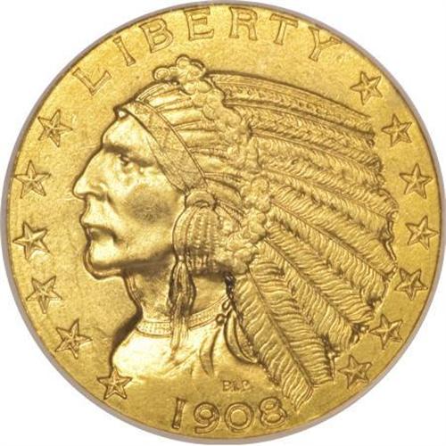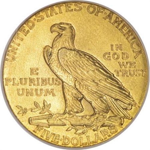 <B>1908 $5 MS64 NGC.</B></I> A lovely peach-gold near-Gem with uncommon sharpness on the headdress feathers. The strike is also crisp on the eagle's shoulder. This first-year Indian five is smooth and satiny, and provides exceptional eye appeal. An enormously popular gold type coin in quality Mint State.<BR><BR><B>Coin Engraver:</B> Bela Lyon Pratt<BR><BR><b>Shipping:</b> Coins & Currency (<a target="_blank" href="http://www.heritageauctions.com/common/shipping.php">view shipping information</a>)