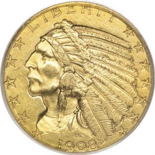 <B>1908 $5 MS64 PCGS. CAC.</B></I> This CAC reviewed Indian half eagle is housed in an older green-label holder. It is an exceptional deep orange-gold example with full frosty mint luster. The design elements extremely sharp on both sides. Perhaps the best value in numismatics are MS64 grade coins that carry the CAC seal of approval.<BR><BR><B>Coin Engraver:</B> Bela Lyon Pratt<BR><BR><b>Shipping:</b> Coins & Currency (<a target="_blank" href="http://www.heritageauctions.com/common/shipping.php">view shipping information</a>)