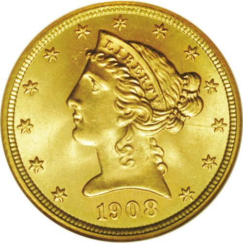 1908 $5 MS66 NGC. An impeccably preserved, extremely s 1908[$5] MS66 NGC.