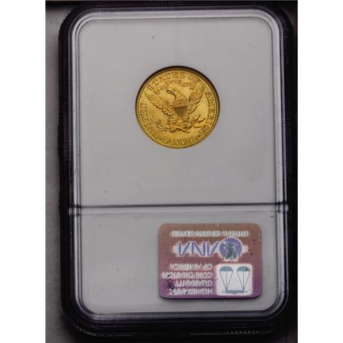 <B>1908<$5> MS66 NGC.</B></I> An impeccably preserved, extremely sharp example of this final-year of issue. The satiny surfaces have accumulated a pronounced amount of green-golden patina over each side. Sharply detailed throughout, there are no singularly mentionable marks or alloy spots. Worthy of a fine collection. Census: 44 in 66, 5 finer (4/06).