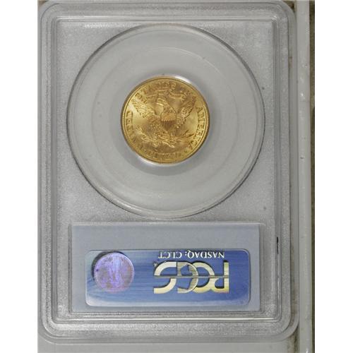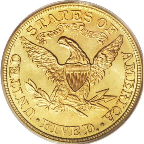 <B>1908 $5 MS66 PCGS.</B></I> This is the final issue of the Liberty Head half eagle series. Only business strikes of this denomination were produced during the year, with a mintage of 421,874 pieces. This example is fully brilliant and sharply struck with intense orange-gold luster and near-pristine surfaces. Population: 24 in 66, 7 finer (2/07).<BR><BR><b>Shipping:</b> Coins & Currency (<a target="_blank" href="http://www.heritageauctions.com/common/shipping.php">view shipping information</a>)