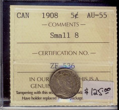 1908 5¢ Small 8 ICCS AU55
