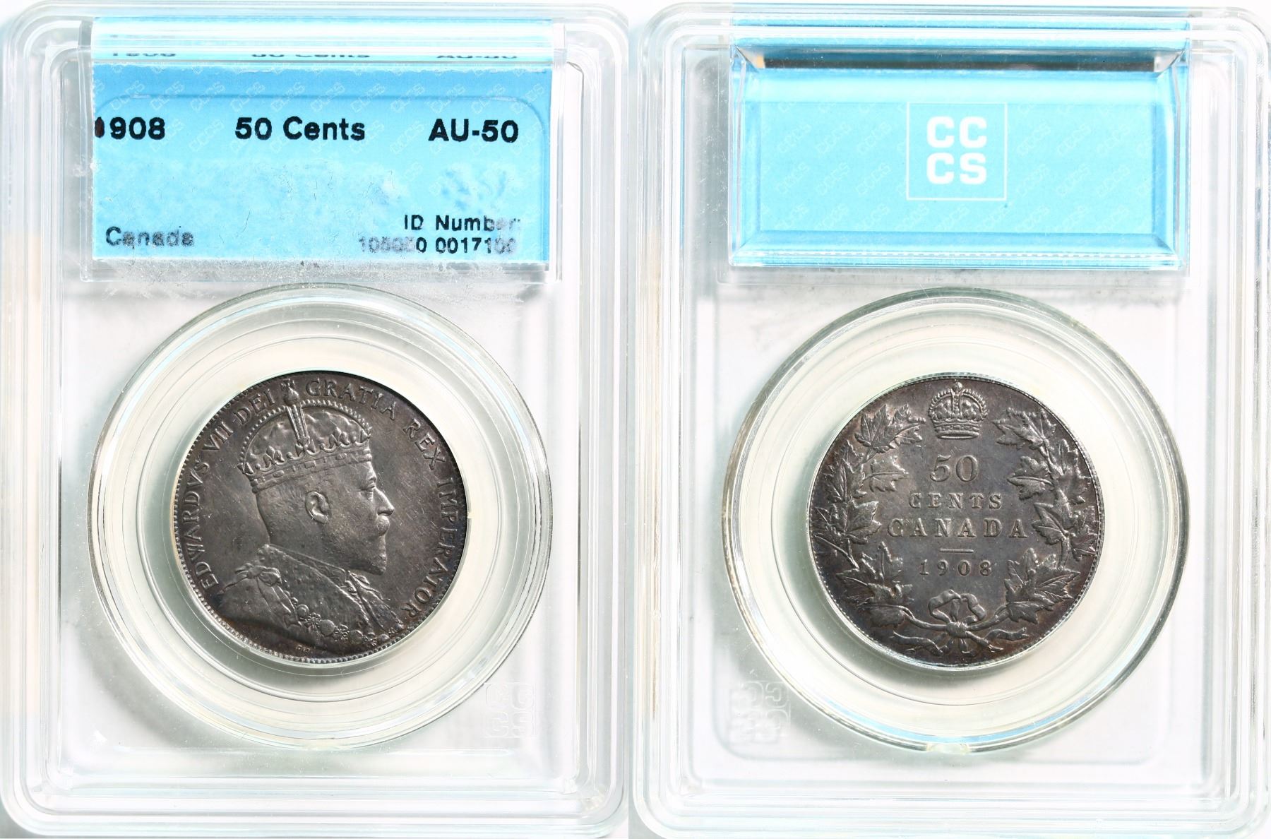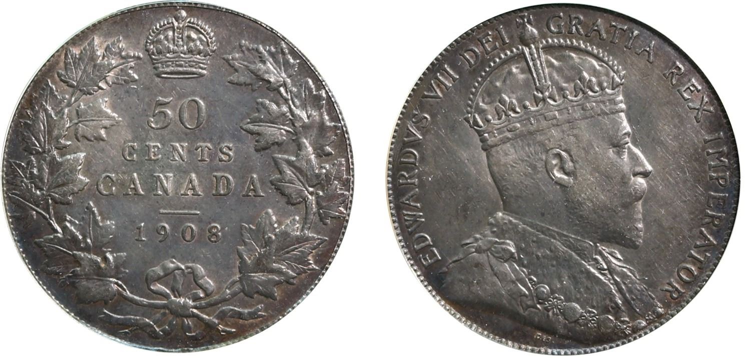 1908 50¢ CCCS About Uncirculated-50. Lustrous issue with light toning.