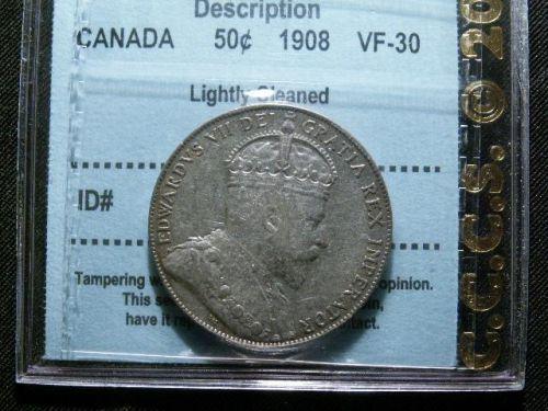 1908 50¢ CCCS VF30 lightly cleaned. Lightly toned.