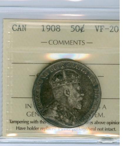 1908 50¢ ICCS VF20 A nice example with problem free.