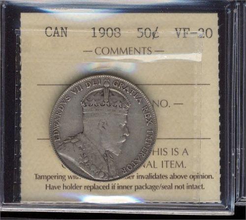 1908 50¢ ICCS VF20. A nice problem free example.
