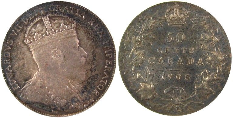 1908 50¢ PCGS MS62. PQ example with russet shades and underlying lustre.