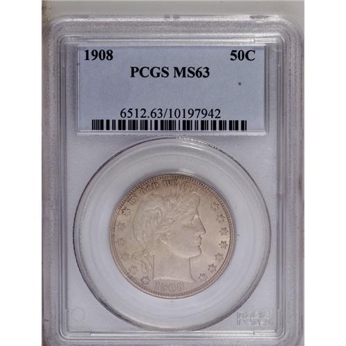 1908 50C MS63 PCGS. Well struck over the obverse, some