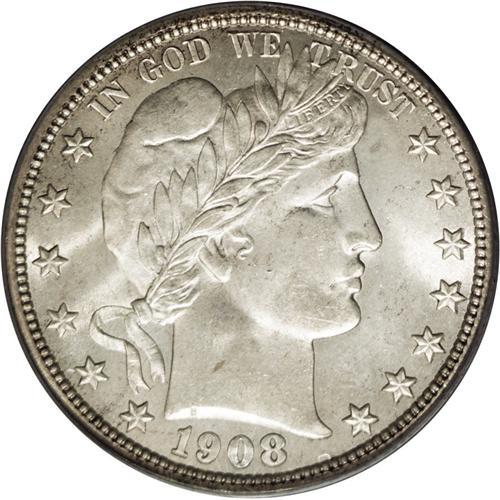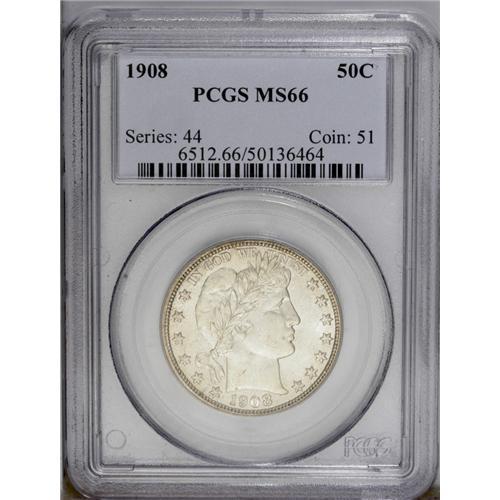 <B>1908<50C> MS66 PCGS.</B></I> A lustrous blast greets the viewer as this coin is first viewed. Lightly toned with hints of gold and tiny darker flecks on both sides. Well struck on all save for the right side of the eagle, which has a touch of weakness on the highest details only. The pristine fields and devices are virtually unmarked by the passage of time. One of eight so graded by PCGS, with only one higher (3/06). <BR><BR><B>Important notice:</B> Heritage usually auctions material at the rate of 200-250 lots per hour. On some occasions eBay Live bid software or the Internet may not be able to keep up with the pace of the auction. We recommend placing a realistic absentee bid now as insurance to avoid disappointment. Occasionally the auctioneer may eliminate or reject an eBay Live bid, and the auctioneer may also reopen a lot after the close of the eBay live bidding (usually because we missed an audience bid), and may reject your bid even if it shows you as the winning bidder. By bidding via eBay Live, you agree that Heritage may award the lot to another bidder at its sole discretion under the circumstances described above or any other reasonable circumstances. Since eBay bids are not shown to us until we open the lot on the floor, we treat those bids just like floor bids. In most cases the floor responds before the eBay bid is presented to us, due to Internet lag time, so for consistency we have made it a policy that floor bids are always considered first over tie eBay live bids. Also please note that all Heritage lots purchased through eBay Live carry a 20% Buyer's Premium. Please make sure you read the Terms and Conditions before you bid. This lot is being auctioned in conjunction with a live floor auction by Heritage Galleries & Auctioneers. All final auction and invoice information will be supplied by Heritage Galleries & Auctioneers, and all other information should be considered preliminary. Lot:2068 <BR><BR><B>Winning Notification and Billing:</B> After the FINAL session in this auction is complete, Heritage will send e-mail and snail mail invoices. This process normally takes several days. All final auction and invoice information will be supplied by Heritage Galleries & Auctioneers, and all other information should be considered preliminary. <BR><BR>This auction will be conducted on a live auction floor and over the Internet through eBay Live. If you choose to place an absentee bid, please take a moment to <font color='#0000ff'><u><a href='http://pages.ebay.com/liveauctions/help/before/laabsentee.html'>learn how eBay Live absentee bidding works</a></u></font><font color='#000000'>