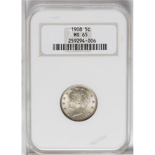1908 5C MS65 NGC. A highly lustrous Gem, boldly struck