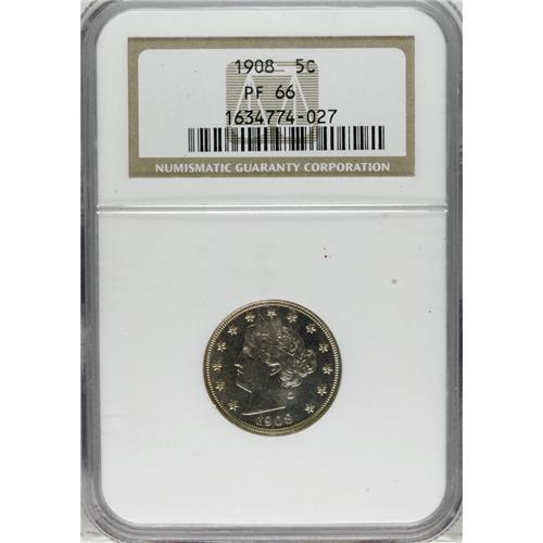 1908 5C PR66 NGC. This flashy Gem has a crisp strike a