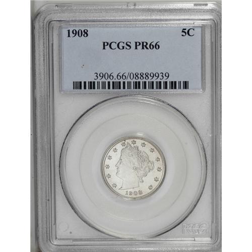 <B>1908<5C> PR66 PCGS.</B></I> A solidly struck and essentially untoned piece with deep reflectivity. A highly appealing specimen. Population: 27 in 66, 8 finer (8/06).<BR><I>From The Troy Wiseman Collection.</B></I>