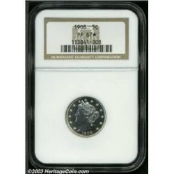 <TABLE cellSpacing=0 cellPadding=0 width="100%" bgColor=#000000 border=0><TBODY><TR><TD width="100%"><TABLE cellSpacing=1 cellPadding=3 width="100%" border=0><TBODY><TR><TD width="100%" bgColor=#79735c><FONT face=arial color=#ffffff size=3><B>Description</B> </FONT></TD></TR><TR><TD width="100%" bgColor=#ffffff><FONT face=arial size=2><B>1908 5C PR67 * NGC.</B></I> A lightly toned Superb Gem with exceptional preservation. The mild white on black contrast approaches the Cameo designation. None have been certified finer by either major service. </FONT></TD></TR></TBODY></TABLE></TD></TR></TBODY></TABLE><BR><A name=PricesRealized></A><TABLE cellSpacing=0 cellPadding=0 width="100%" bgColor=#000000 border=0><TBODY><TR><TD width="100%"><TABLE cellSpacing=1 cellPadding=3 width="100%" border=0><TBODY><TR><TD width="100%" bgColor=#79735c><A name=PR><FONT face=arial color=#ffffff size=3><B>Previous Prices from Heritage Auctions</B> </FONT></A></TD></TR><TR><TD bgColor=#f6f6ed><TABLE cellSpacing=0 cellPadding=0 width="100%" border=1><TBODY><TR><TD align=middle width="33%"><B>Date</B></TD><TD align=middle width="33%"><B>Service</B></TD><TD align=middle width="33%"><B>Price</B></TD></TR><TR bgColor=whitesmoke><TD width="33%"><B>11/18/1999</B></TD><TD width="33%">NGC</TD><TD width="33%">$1,782.50</TD></TR><TR bgColor=whitesmoke><TD width="33%"><B>08/09/2000</B></TD><TD width="33%">ANACS</TD><TD width="33%">$1,840.00</TD></TR></TBODY></TABLE></TD></TR><TR><TD bgColor=#ffffff><FONT face=arial size=1 ?>PLEASE NOTE: All prices realized reflect the final hammer price PLUS the buyer's premium in auctions that charge a buyer's premium. Each item has a notation at the top of the listing indicating whether that lot included a buyer's premium. Example: A item that sells with a final hammer price of $100 and a 20% buyer's premium will display with a price realized of $120. All information listed is intended to be as accurate as possible, but errors are possible. Please use this guide carefully and inform us of any inaccuracies. </FONT></TD></TR></TBODY></TABLE></TD></TR></TBODY></TABLE><BR><TABLE cellSpacing=0 cellPadding=0 width="100%" bgColor=#000000 border=0><TBODY><TR><TD width="100%"><TABLE cellSpacing=1 cellPadding=3 width="100%" border=0><TBODY><TR><TD width="100%" bgColor=#79735c colSpan=6><FONT face=arial color=#ffffff size=3><B>Price Guide*</B> </FONT></TD></TR><TR bgColor=#f6f6ed><TD align=middle><B>Grade</B> </TD><TD align=middle><B>Coin World<BR>(Trends)</B> </TD><TD align=middle><B>Numismedia<BR>Retail</B> </TD><TD align=middle><B>Numismedia<BR>Wholesale</B> </TD><TD align=middle><B>Coin<BR>Universe</B> </TD><TD align=middle><B>Heritage<BR>Value Index</B> </TD></TR><TR bgColor=#ffffff><TD align=middle>66</TD><TD align=right>---</TD><TD align=right>$860.00</TD><TD align=right>$665.00</TD><TD align=right>$825.00</TD><TD align=right>$518.75</TD></TR><TR style="FONT-WEIGHT: bold" bgColor=#cccfdd><TD align=middle>67</TD><TD align=right>---</TD><TD align=right>---</TD><TD align=right>$1,550.00</TD><TD align=right>$2,400.00</TD><TD align=right>$1,680.00</TD></TR><TR bgColor=#ffffff><TD align=middle>68</TD><TD align=right>---</TD><TD align=right>---</TD><TD align=right>---</TD><TD align=right>---</TD><TD align=right>---</TD></TR><TR bgColor=#ffffff><TD colSpan=6><FONT size=1>*All information listed is intended to be as accurate as possible, but errors are possible. No item may be returned or refused based on this information which is provided as a service to our customers. You should contact each pricing source directly to determine the accuracy of this information. </FONT></TD></TR></TBODY></TABLE></TD></TR></TBODY></TABLE><BR><TABLE cellSpacing=0 cellPadding=0 width="100%" bgColor=#000000 border=0><TBODY><TR><TD width="100%"><TABLE cellSpacing=1 cellPadding=3 width="100%" border=0><TBODY><TR><TD width="100%" bgColor=#79735c><FONT face=arial color=#ffffff size=3><B>Population Guide</B> </FONT></TD></TR><TR bgColor=#ffffff><TD align=middle><!-- Begin Output of Population Grid--><TABLE cellSpacing=0 cellPadding=0 width="100%" border=0><TBODY><TR><TD vAlign=center><TABLE cellSpacing=0 width="100%" border=1 cellsadding="3"><TBODY><TR><TD vAlign=center><TABLE cellSpacing=0 cellPadding=3 width="100%" border=1><TBODY><TR><TD vAlign=center align=middle bgColor=#f0f1e8 colSpan=2 <CENTER><FONT face=Arial size=2><B>PCGS Pop </B></FONT><CENTER></CENTER></TD><TD vAlign=center align=middle bgColor=#f0f1e8 colSpan=2><CENTER><FONT face=Arial size=2><B>NGC Pop</B></CENTER></FONT></TD></TR><TR><TD vAlign=center><FONT face=Arial size=2>(67)</FONT> </TD><TD vAlign=center align=right><FONT face=Arial size=2>8</FONT> </TD><TD vAlign=center><FONT face=Arial size=2>(67)</FONT> </TD><TD vAlign=center align=right><FONT face=Arial size=2>16</FONT> </TD></TR><TR><TD vAlign=center><FONT face=Arial size=2>(>67)</FONT> </TD><TD vAlign=center align=right><FONT face=Arial size=2>0</FONT> </TD><TD vAlign=center><FONT face=Arial size=2>(>67)</FONT> </TD><TD vAlign=center align=right><FONT face=Arial size=2>0</FONT> </TD></TR></TBODY></TABLE></TD></TR></TBODY></TABLE></TD></TR></TBODY></TABLE><!-- End Output of Population Grid--> Important notice: Heritage usually auctions material at the rate of 200-250 lots per hour. On some occasions eBay Live bid software or the Internet may not be able to keep up with the pace of the auction. We recommend placing a realistic absentee bid now as insurance to avoid disappointment. Occasionally the auctioneer may eliminate or reject an eBay Live bid, and the auctioneer may also reopen a lot after the close of the eBay live bidding (usually because we missed an audience bid), and may reject your bid even if it shows you as the winning bidder. By bidding via eBay Live, you agree that Heritage may award the lot to another bidder at its sole discretion under the circumstances described above or any other reasonable circumstances. Also please note that all Heritage lots purchased through eBay Live carry a 20% 