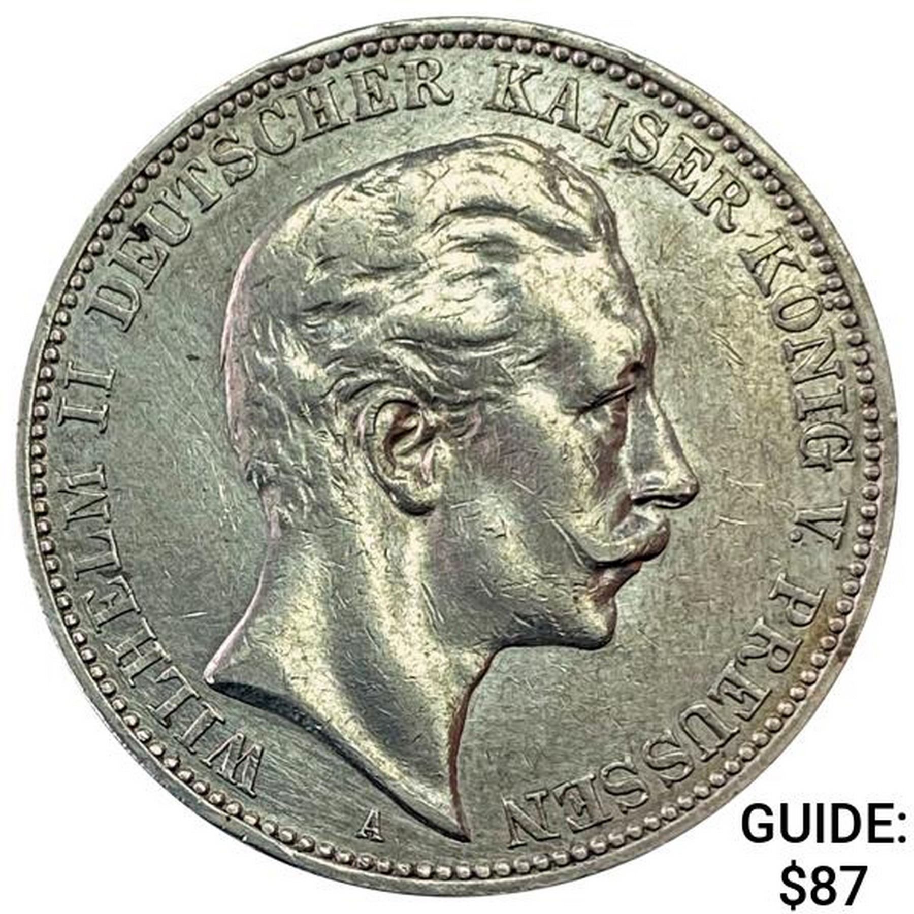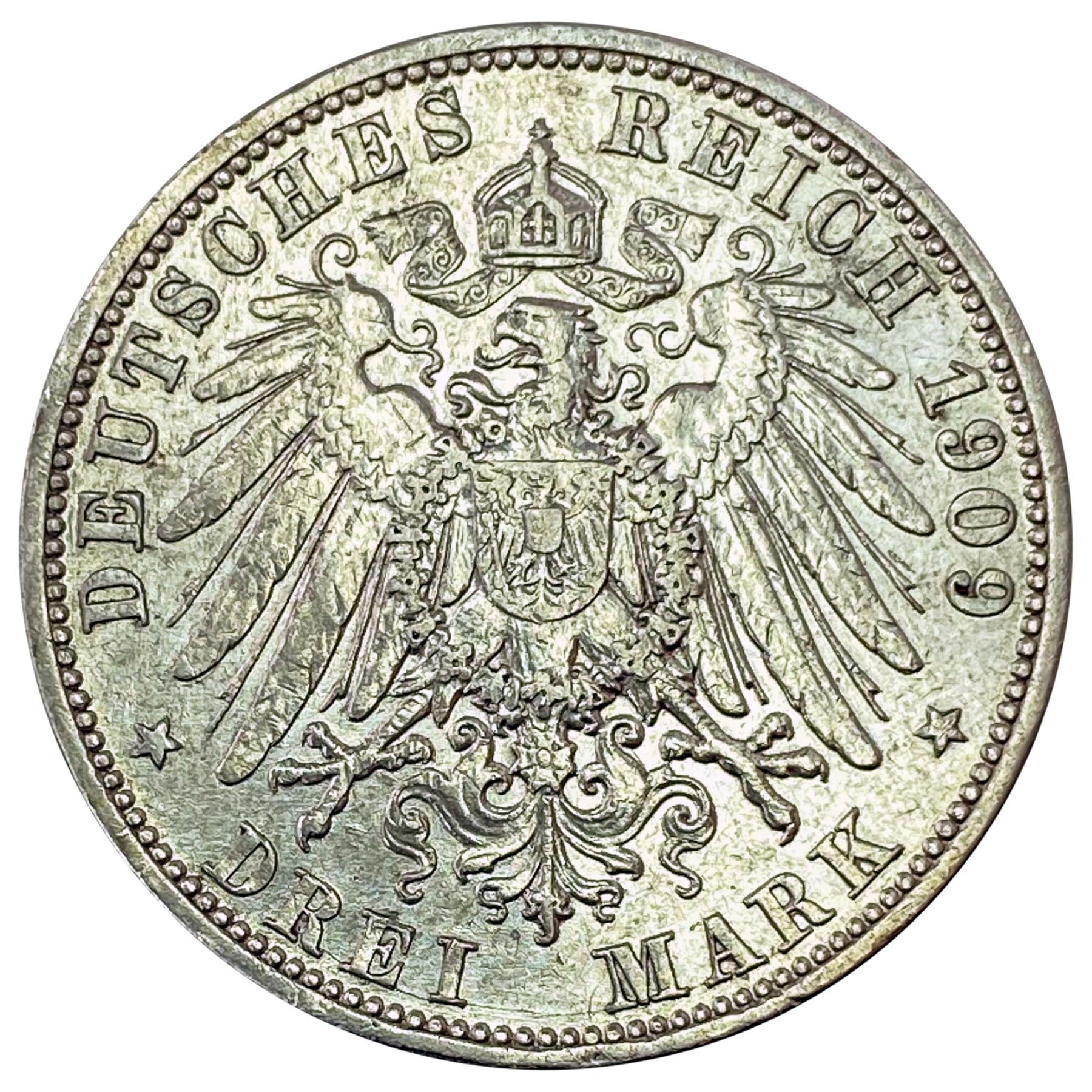 1908-A Germany Silver 3 Mark CLOSELY UNCIRCULATED