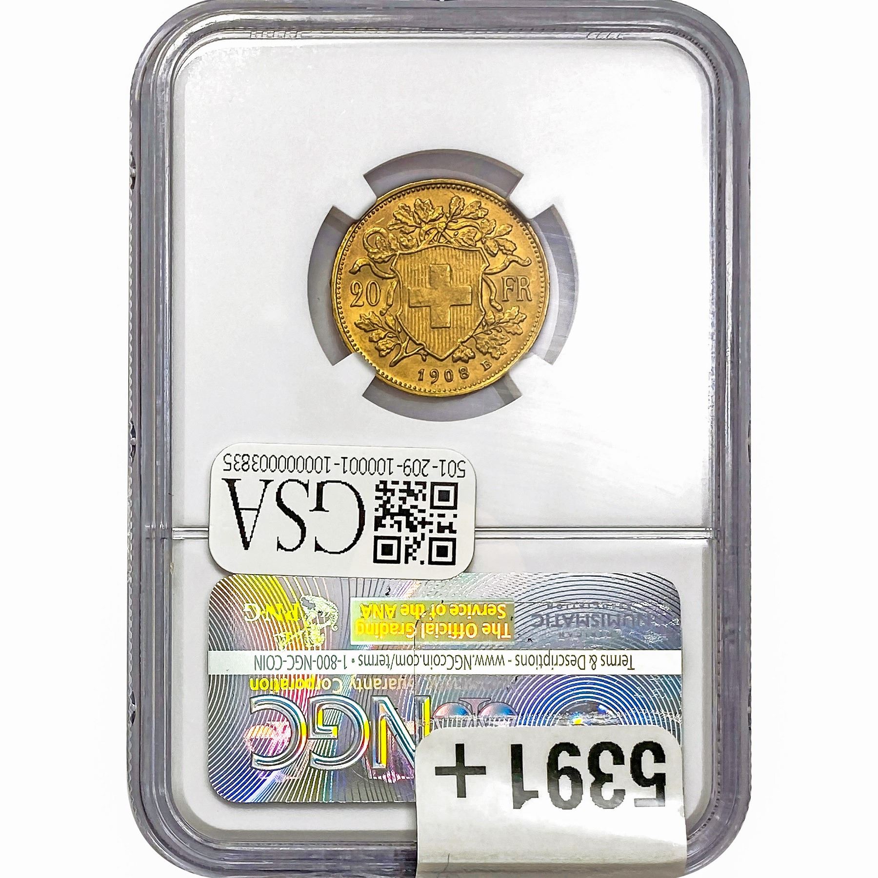 e. Coins sold referencing a third-party grading service are sold “AS IS” without any express or implied warranty, except for a guarantee by GSA that they are genuine. Removal or alteration of the holder, voids all of Bidder’s claims concerning that Product. Certain warranties may be available from the grading services and Bidders are referred to them for further details: Numismatic Guaranty Corporation (NGC), PO Box 4776, Sarasota, FL 34230, www.ngccoin.com/services/writtenguarantee.asp; Professional Coin Grading Services (PCGS), PO Box 9458, Newport Beach, CA 92658, www.pcgs.com/guarantee.html; ANACS, 6555 S. Kenton St., Ste. 303, Englewood, CO 80111; and Independent Coin Grading Co. (ICG), 7901 East Bellview, Ave., Suite 50, Englewood, CO 80111.