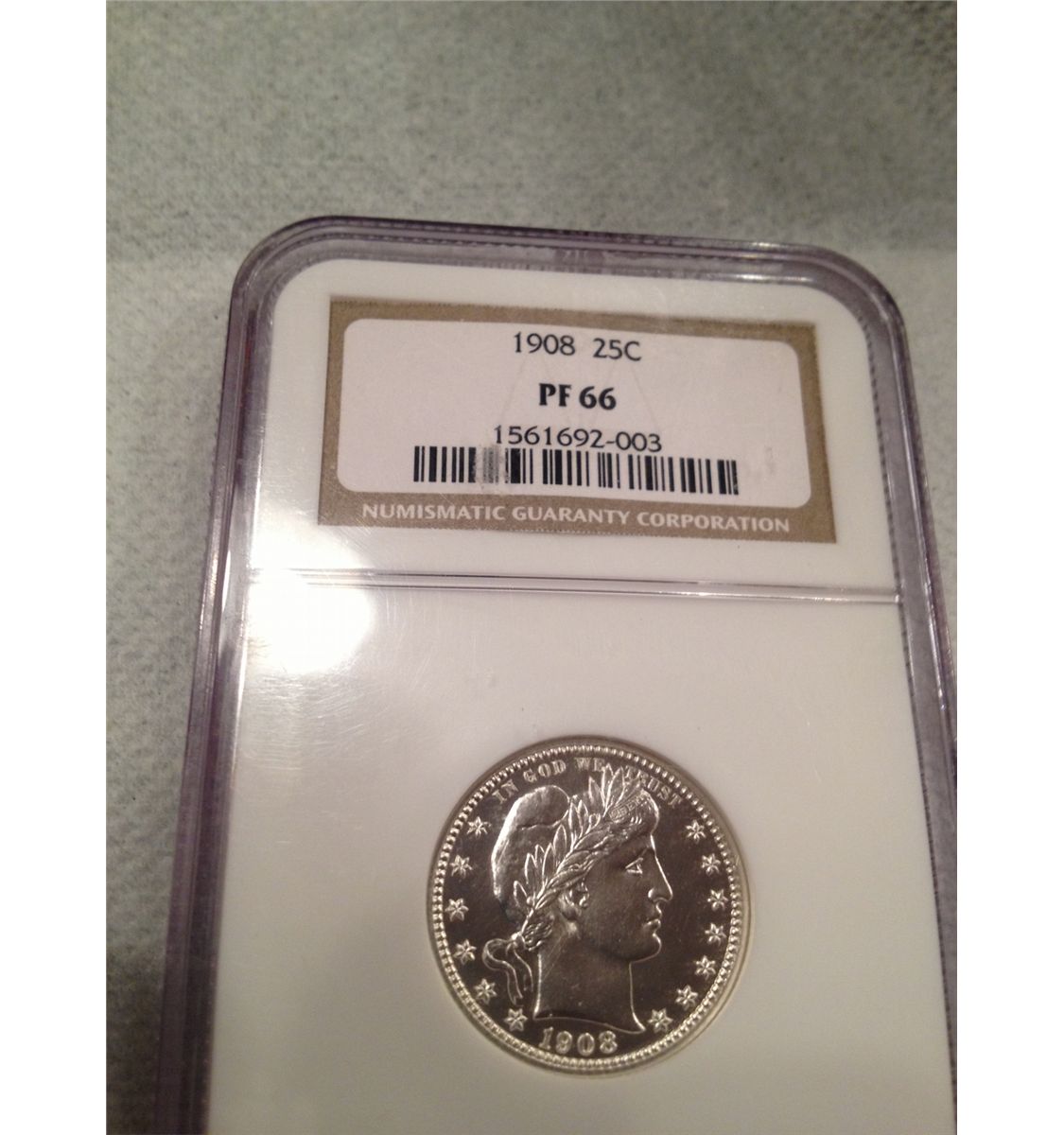 1908 BARBER QUARTER NGC PROOF 66 RARE
