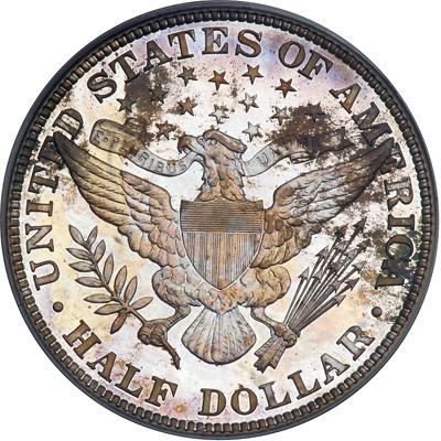 1908 Barber Half Dollar. PCGS graded Proof 67. Light hint of golden toning. Only 545 Proofs issued. Original colors dominate both sides, a patina that gradually lightens as the outer margins are approached on the obverse. This elegantly original Superb Gem has a preservation that can best be described as clean and attractive. Pop 7; 3 finer in 68 (PCGS # 6555) .