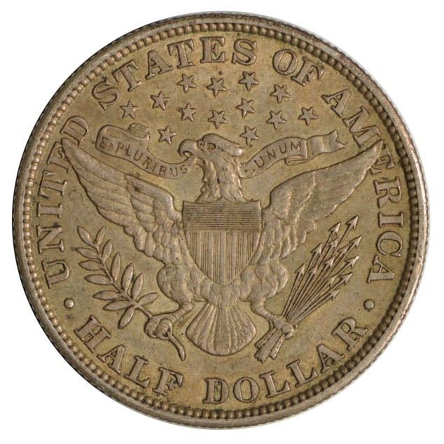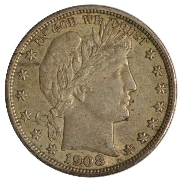 One 1908 Barber Half Dollar Coin.