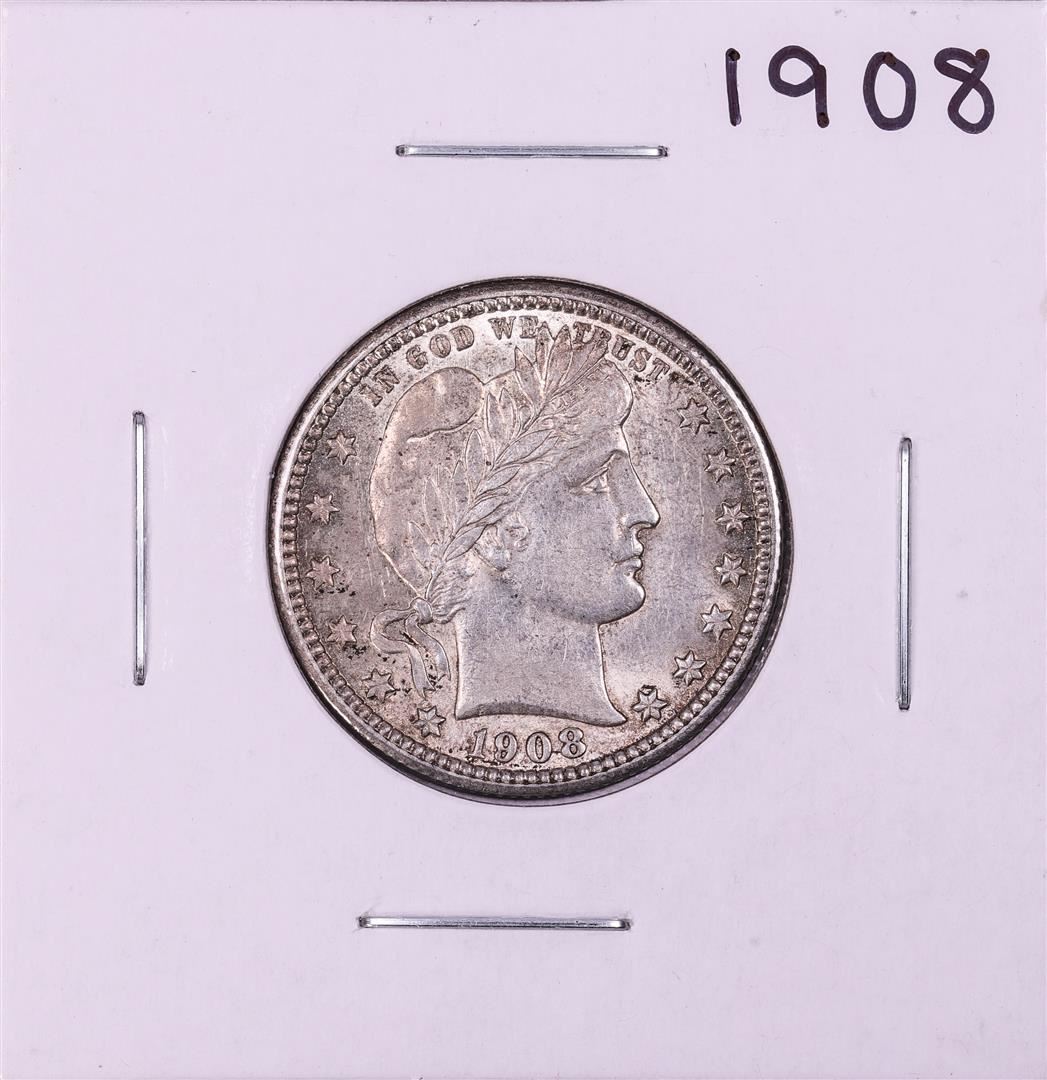 One 1908 Barber Quarter Coin.