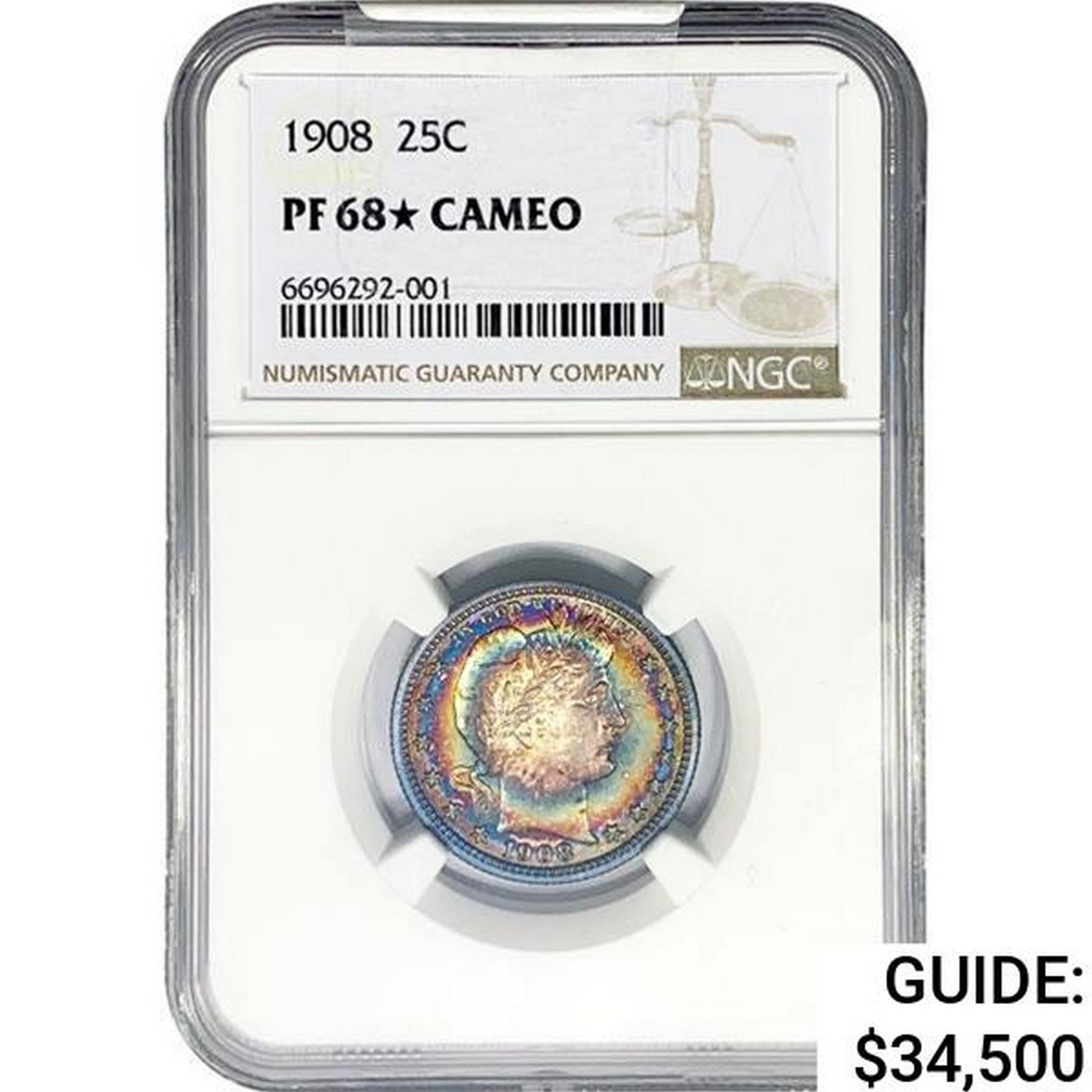 1908 Barber Quarter NGC PF68* Cameo