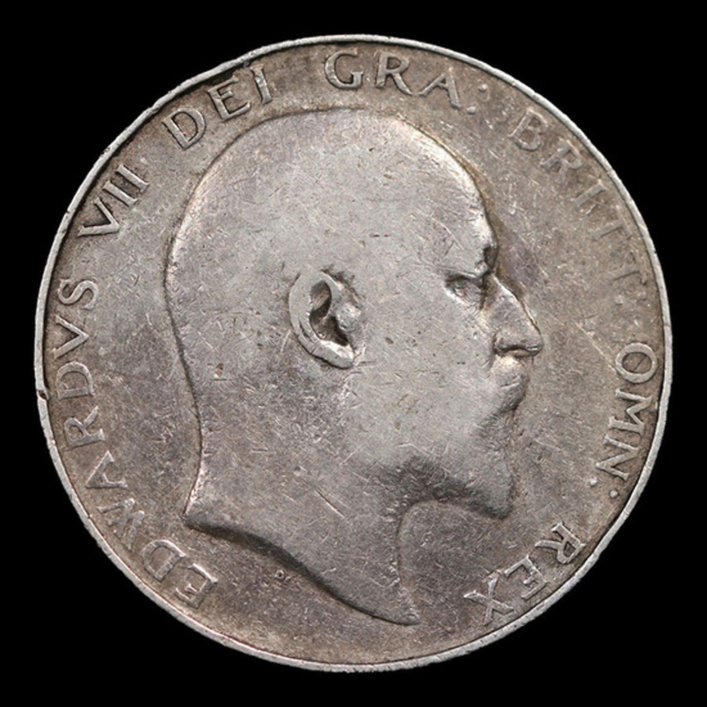 1908 Britain 1/2 Crown 1/2c KM-802 Grades vf+. The eldest son of Queen Victoria and Prince Albert of Saxe-Coburg and Gotha, and nicknamed "Bertie", Edward was related to royalty throughout Europe. He was Prince of Wales and heir apparent to the British throne for almost 60 years. During the long reign of his mother, he was largely excluded from political influence and came to personify the fashionable, leisured elite. He travelled throughout Britain performing ceremonial public duties and represented Britain on visits abroad. His tours of North America in 1860 and of the Indian subcontinent in 1875 proved popular successes, but despite public approval, his reputation as a playboy prince soured his relationship with his mother.As king, Edward played a role in the modernisation of the British Home Fleet and the reorganisation of the British Army after the Second Boer War of 1899–1902. He re-instituted traditional ceremonies as public displays and broadened the range of people with whom royalty socialised. He fostered good relations between Britain and other European countries, especially France, for which he was popularly called "Peacemaker", but his relationship with his nephew, the German Emperor Wilhelm II, was poor. The Edwardian era, which covered Edward's reign and was named after him, coincided with the start of a new century and heralded significant changes in technology and society, including steam turbine propulsion and the rise of socialism. He died in 1910 in the midst of a constitutional crisis that was resolved the following year by the Parliament Act 1911, which restricted the power of the unelected House of Lords.