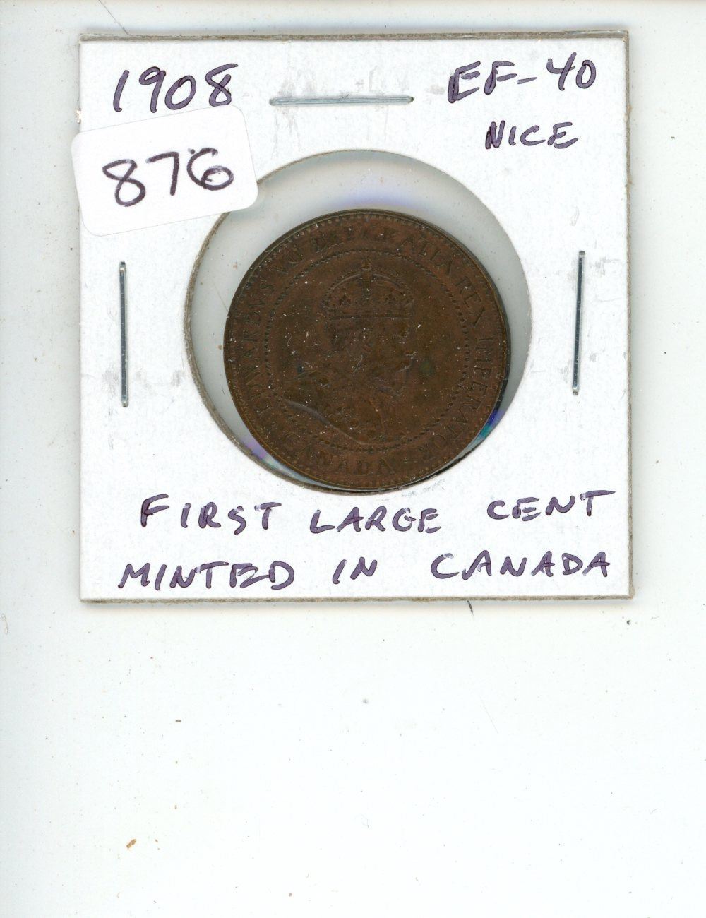 1908 Canadian Edward VII Large Cent. The first Large Cent minted in Canada. EF-40. Nice.