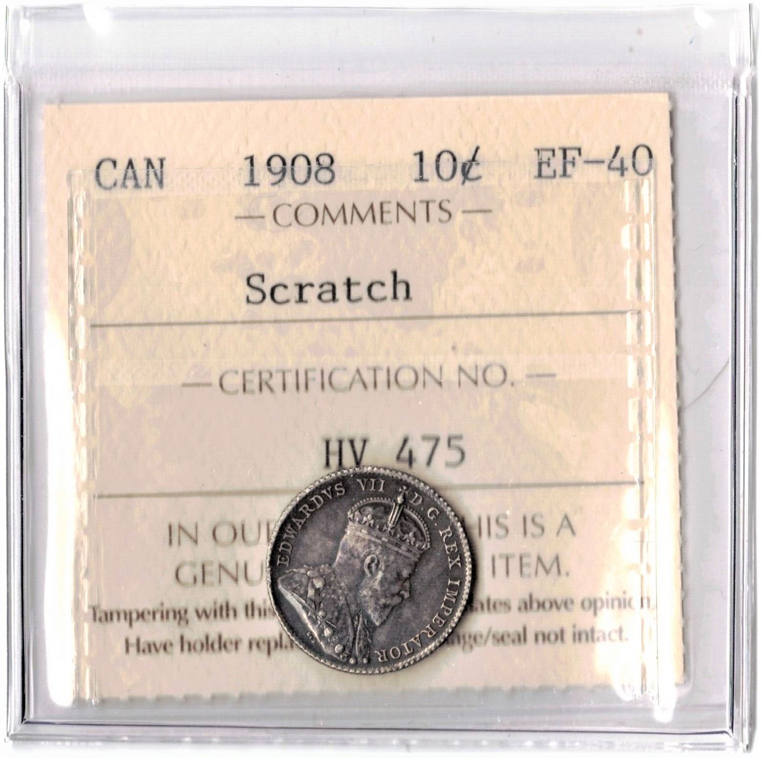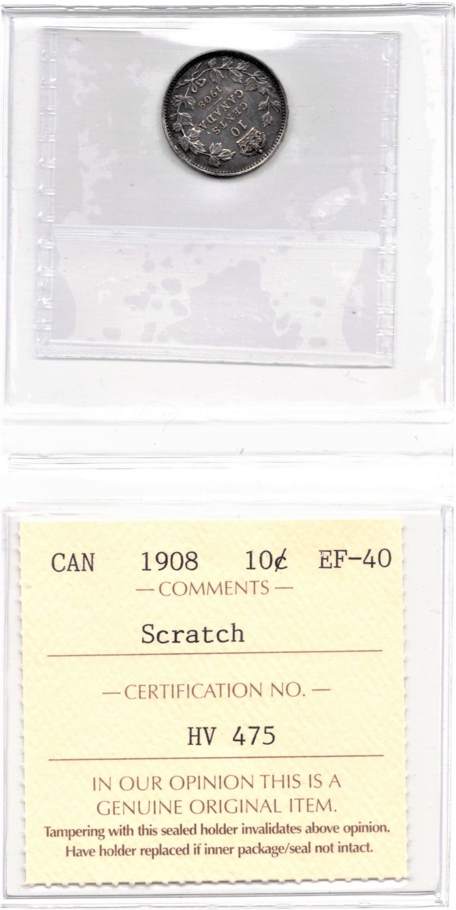 1908 Canadian Silver Ten Cent ICCS Graded EF-40
