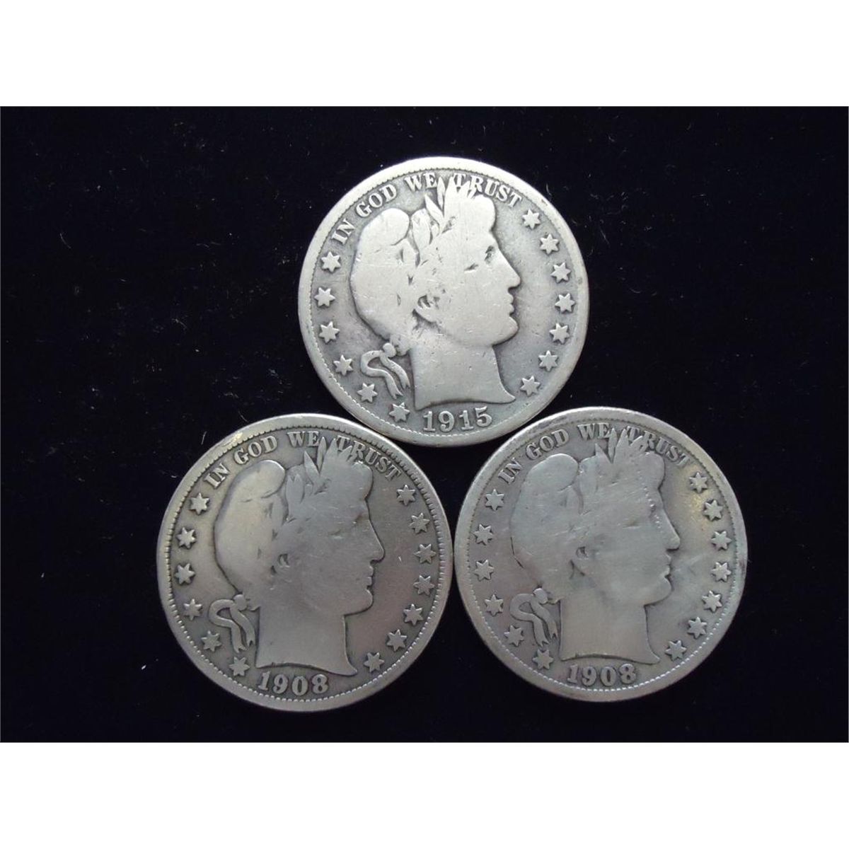 1908-D,08-O & 15-D BARBER HALF DOLLARS ALL (VG)