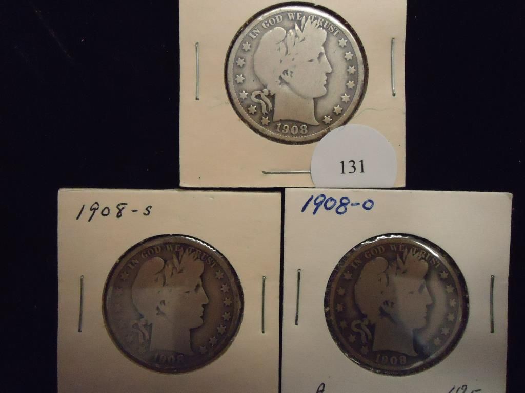 1908-D,08-S & 08-O BARBER HALF DOLLARS