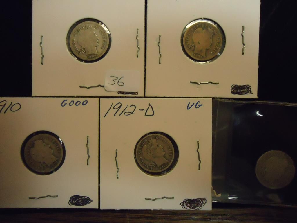 1908-D,09,10,12-D & 13 BARBER DIMES