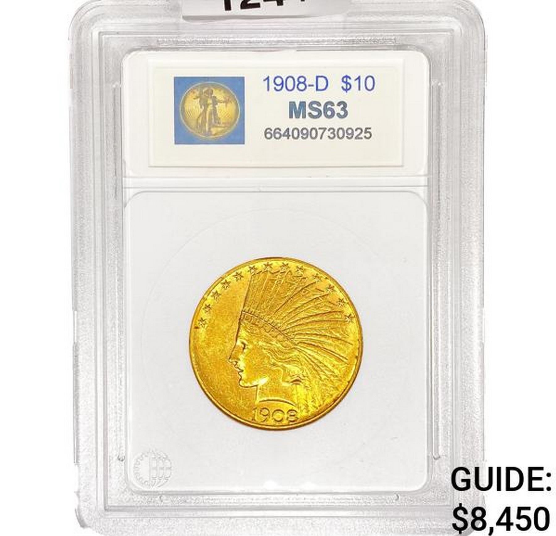 1908-D $10 Gold Eagle CCG MS63