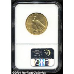 <B>1908-D<$10> Motto MS62 NGC.</B></I> Typically struck with matte-like surface textures, lovely red-gold color, and gleaming luster. There is a noticeable pinscratch in the left obverse field, and a few other contact marks are also visible, on both sides of the piece. The 1908-D Motto is a very scarce and underrated issue in Mint State. Population: 56 in 62, 35 finer (6/04). <BR><BR><B>Important notice:</B> Heritage usually auctions material at the rate of 200-250 lots per hour. On some occasions eBay Live bid software or the Internet may not be able to keep up with the pace of the auction. We recommend placing a realistic absentee bid now as insurance to avoid disappointment. Occasionally the auctioneer may eliminate or reject an eBay Live bid, and the auctioneer may also reopen a lot after the close of the eBay live bidding (usually because we missed an audience bid), and may reject your bid even if it shows you as the winning bidder. By bidding via eBay Live, you agree that Heritage may award the lot to another bidder at its sole discretion under the circumstances described above or any other reasonable circumstances. Since eBay bids are not shown to us until we open the lot on the floor, we treat those bids just like floor bids. In most cases the floor responds before the eBay bid is presented to us, due to Internet lag time, so for consistency we have made it a policy that floor bids are always considered first over tie eBay live bids. Also please note that all Heritage lots purchased through eBay Live carry a 20% Buyer's Premium. Please make sure you read the Terms and Conditions before you bid. </span></font></tr></table></td></tr></table>