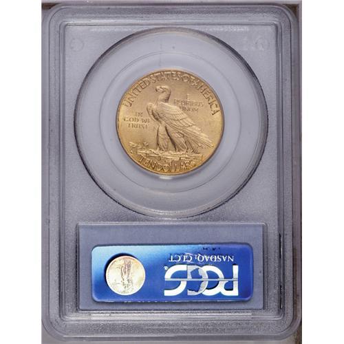 <B>1908-D<$10> Motto MS62 PCGS.</B></I> Well struck with bright, lustrous, matte-like surfaces that have light coloration and minor surface blemishes for the grade. A couple of marks are noticeable on Liberty's cheek, and one more is noted on the eagle's breast. A scarce Mint State issue, despite its rather hefty original mintage. Population: 93 in 62, 76 finer (3/06). <BR><BR><B>Important notice:</B> Heritage usually auctions material at the rate of 200-250 lots per hour. On some occasions eBay Live bid software or the Internet may not be able to keep up with the pace of the auction. We recommend placing a realistic absentee bid now as insurance to avoid disappointment. Occasionally the auctioneer may eliminate or reject an eBay Live bid, and the auctioneer may also reopen a lot after the close of the eBay live bidding (usually because we missed an audience bid), and may reject your bid even if it shows you as the winning bidder. By bidding via eBay Live, you agree that Heritage may award the lot to another bidder at its sole discretion under the circumstances described above or any other reasonable circumstances. Since eBay bids are not shown to us until we open the lot on the floor, we treat those bids just like floor bids. In most cases the floor responds before the eBay bid is presented to us, due to Internet lag time, so for consistency we have made it a policy that floor bids are always considered first over tie eBay live bids. Also please note that all Heritage lots purchased through eBay Live carry a 20% Buyer's Premium. Please make sure you read the Terms and Conditions before you bid. This lot is being auctioned in conjunction with a live floor auction by Heritage Galleries & Auctioneers. All final auction and invoice information will be supplied by Heritage Galleries & Auctioneers, and all other information should be considered preliminary. Lot:4109 <BR><BR><B>Winning Notification and Billing:</B> After the FINAL session in this auction is complete, Heritage will send e-mail and snail mail invoices. This process normally takes several days. All final auction and invoice information will be supplied by Heritage Galleries & Auctioneers, and all other information should be considered preliminary. <BR><BR>This auction will be conducted on a live auction floor and over the Internet through eBay Live. If you choose to place an absentee bid, please take a moment to <font color='#0000ff'><u><a href='http://pages.ebay.com/liveauctions/help/before/laabsentee.html'>learn how eBay Live absentee bidding works</a></u></font><font color='#000000'>